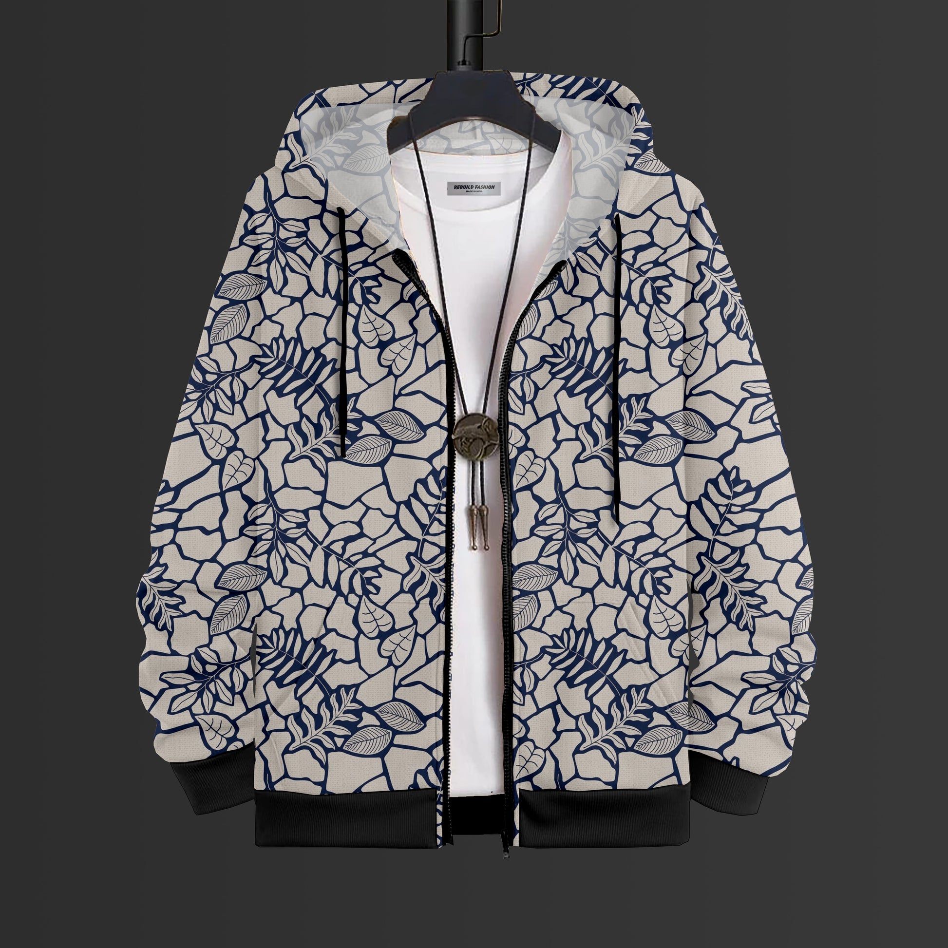 Blue Vine Printed Hoodie With Zip #92